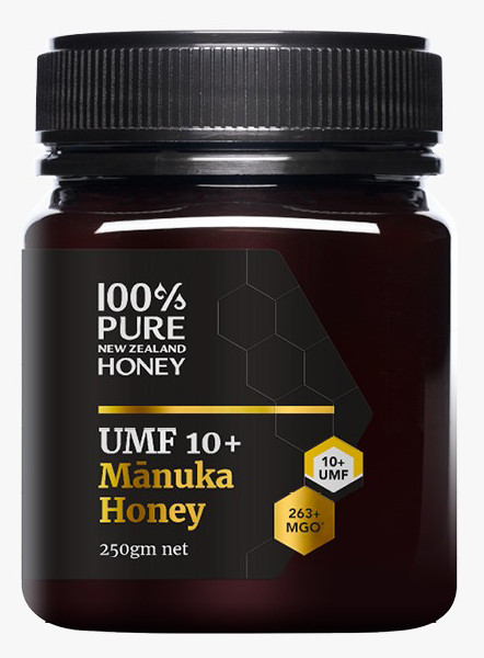 Manuka Honey UMF 10+ MGO 263+ Handcrafted 250g. Our most popular mid-range Manuka honey, UMF 10+ is a perfect combination of strength and taste. With higher levels of MGO (minimum 263mg/kg) and other unique markers, this honey has three times the effectiveness of 5+. Darker in colour and with a richer, earthy taste.