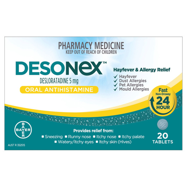 Description Desonex Allergy and Hayfever Relief 5mg 20 Tablets Additional Details UPC: 4057599004847 Barcode: 4057599004847 Bought: 0