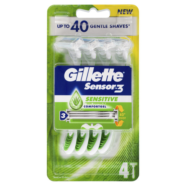Description Gillette Sensor 3 Comfort 4 Disposable Razors Additional Details UPC: 4902430873406 Barcode: 3014260295813