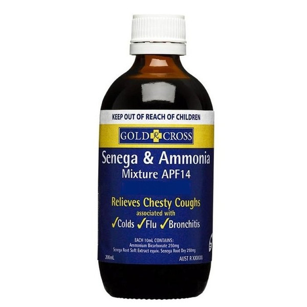 Gold X Senega and Ammonia Mixture is a cough expectorant for a chesty cough. A chesty cough is when one has a ‘rattly’ ‘tight’ chest. The wet cough may be the last symptom left after a sore throat or nasal and sinus congestion. The common symptoms are congested & breathless feelings, cough with mucus or phlegm.