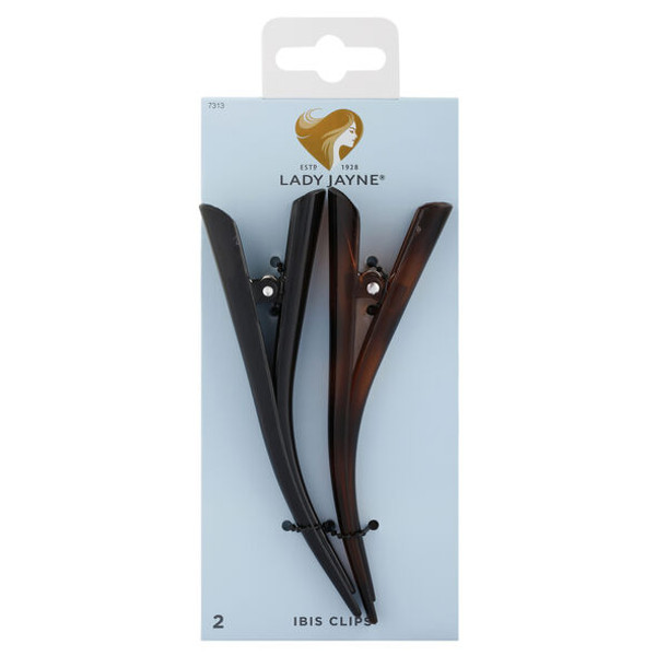 Description Lady Jayne Ibis Clips 2 Pack Strong jaws hold hair firmly Spring action ensures secure hold Hold a tousled twist easily without extra bobby pins Additional Details UPC: 9.31046E+12 Barcode: 9310460073133
