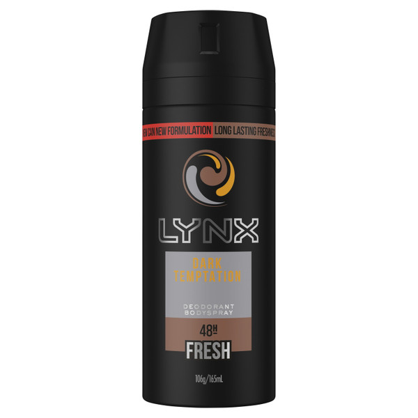 Description Lynx Deodorant Aerosol Dark Temptation 165ml Additional Details UPC: 9300830054480 Barcode: 9300830054480