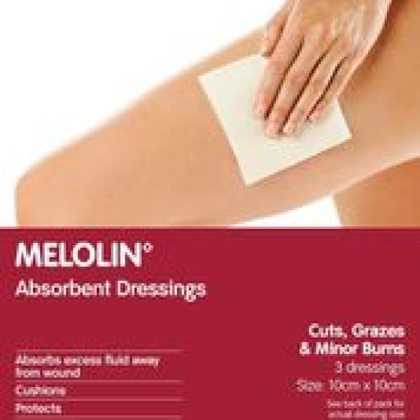 Description Melolin Absorbent Dressing 10cm x 10cm 3 Pack Additional Details UPC: 9330169002289 Barcode: 9330169000452