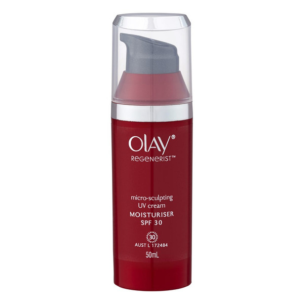 Olay Regenerist Micro-Sculpting UV Cream Moisturiser Day Cream SPF 30 the formula contains powerful antioxidants and has SPF30 sun protection to protect skin from damaging UVA/UVB rays & restore firmness.