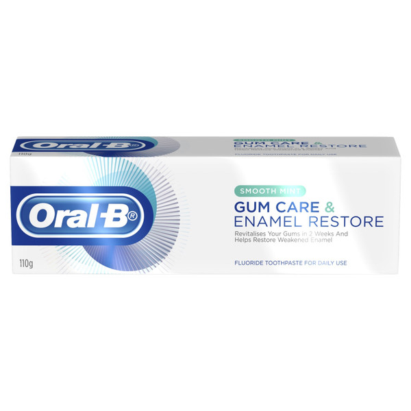 Oral B Gum Care & Enamel Restore Toothpaste revitalises your gums in 2 weeks and helps restore weakened enamel. It also promotes healthy gums by fighting plaque bacteria along the gumline and slowing its re-growth.