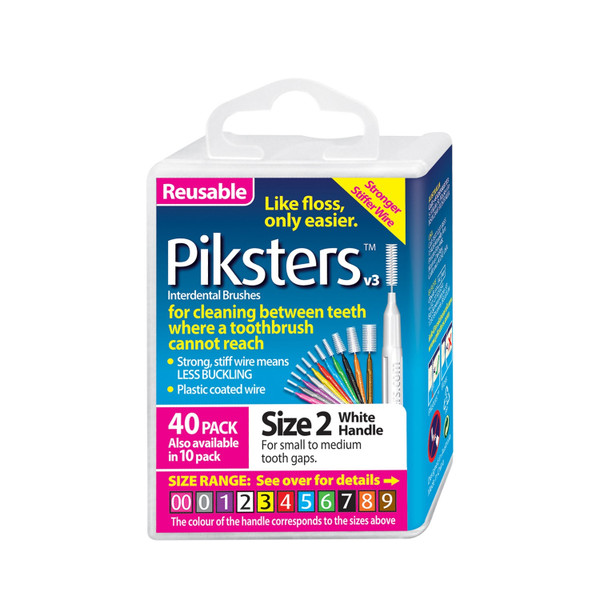 Description Piksters Interdental Brushes Size 2 40 Pack Additional Details UPC: 9336628000124 Barcode: 9336628000124